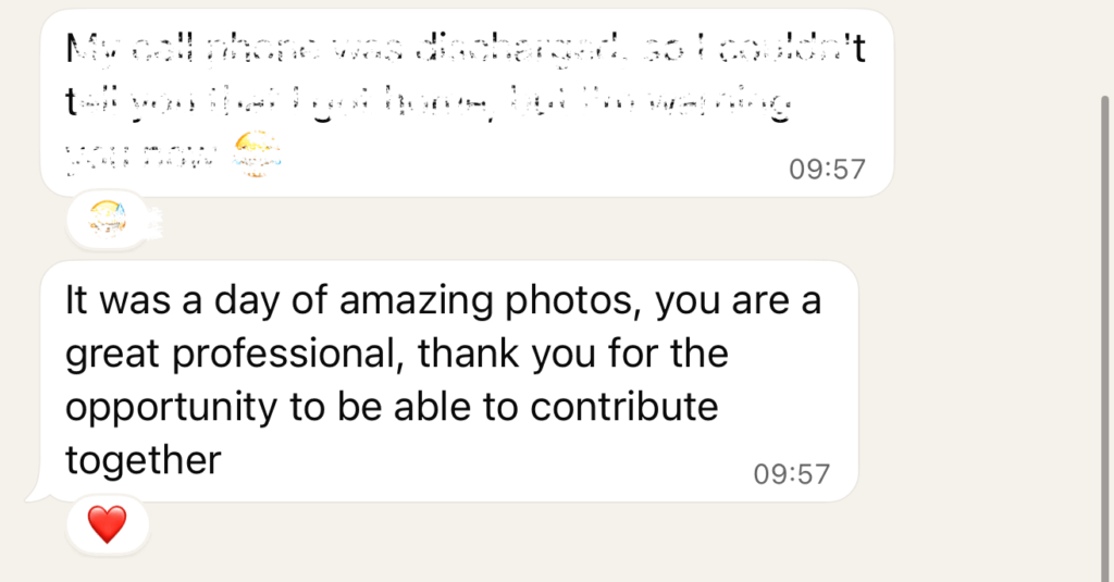 “…it was a day of amazing photos, you are a great professional, thank you for the opportunity to be able to contribute together…”